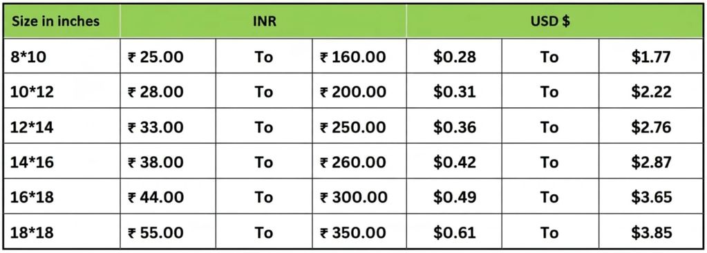 We offer premium canvas bags in a variety of high-quality fabrics and customizable options to meet every requirement. Prices start from ₹22 (approx. $0.27 USD) and can go up to ₹350 (approx. $4.20 USD), depending on factors such as fabric type, customization, GSM, yard count, zippers, and printing options. Our canvas collection includes Drill Canvas, Duck Canvas, Pure Canvas, Recycled Canvas, Lami